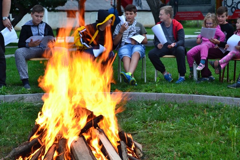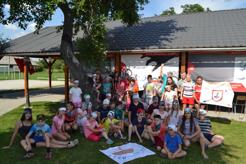 Friday, too, had its share of adventures. János Nagy, canoe rower from Budapest, demonstrated his sport and gave several young participants a training session on the tricks of the sport in the swimming pool. In the meantime, others went horse-riding. Then Gabriella Lőrinc, David Csornij, Gergely Marcsák and Timea Shrek took our pirates into the world of fairy tales: they entertained the children with exciting stories, poems and songs. In the afternoon, Oksana Szimkovics and Sándor Szilárd, of the ArtTisza Art Association, led them in handicraft sessions. The day ended with a team game “let’s light the campfire together” led by Bálint Homoki.