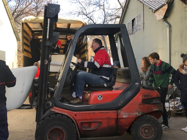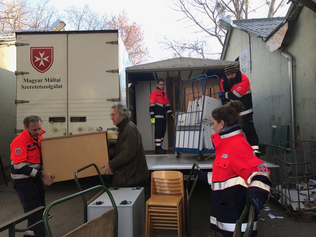 Budapest, 18 November 2018. The "TedEum" youth group implemented its first charitable group activity on the occasion of the World Day of the Poor. Led by Hospitaller Loránd Erőss and by András Schumicky, the youngsters unpacked and warehoused for distribution three truckloads of donations that had just arrived from the Taufenkirchen branch of Malteser Hilfsdienst: furniture, household appliances and clothing to be distributed by the Hungarian Charity Service of the Order to the beneficiaries of its local branches.