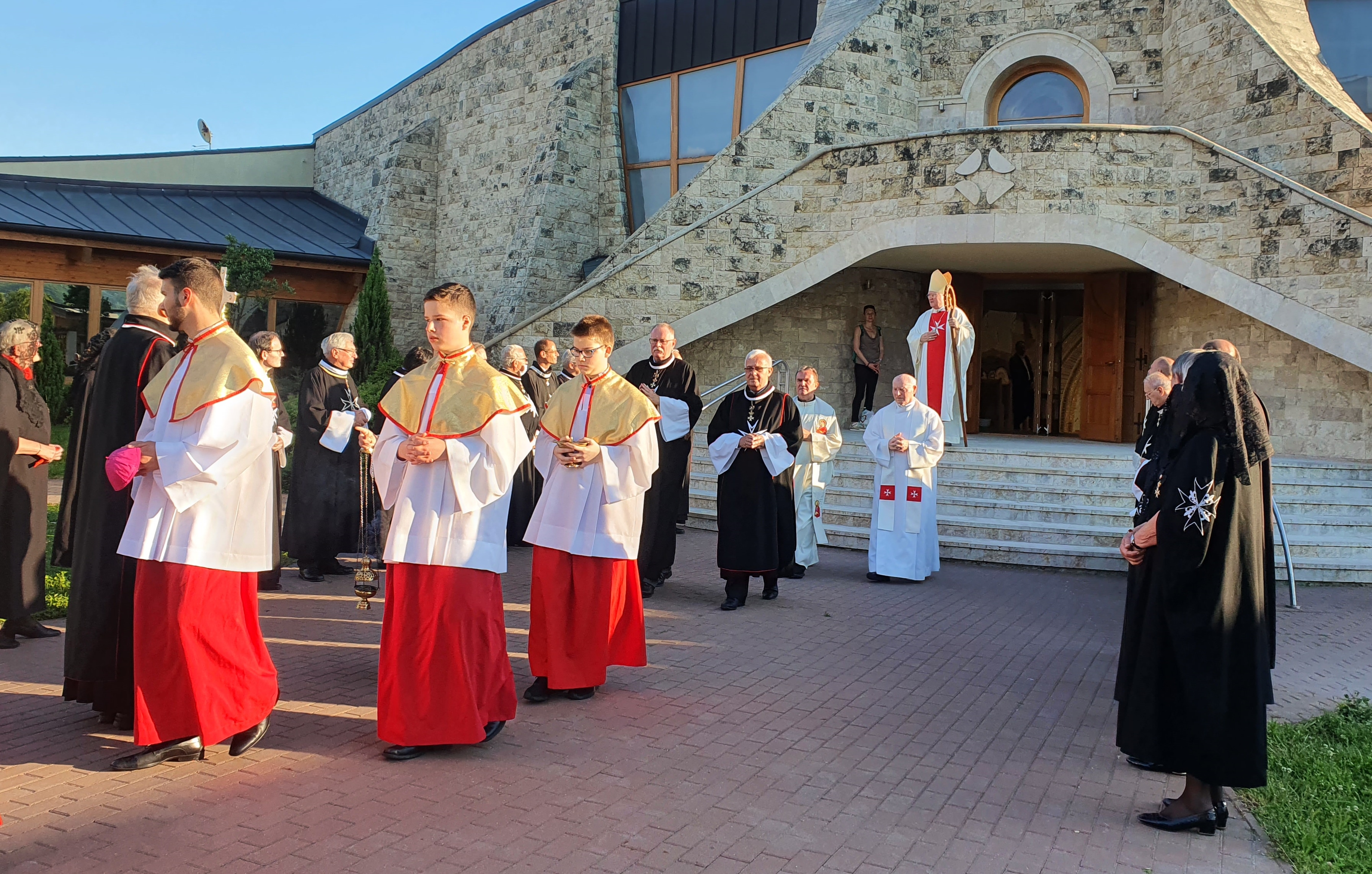 Budapest, 2020 június 24. A koronavírus-helyzet miatt a nagyobb alapterületű, videó közvetítésre felszerelt gazdagréti Szent Angyalok plébánia-templomban tartotta a Magyar Máltai Lovagok Szövetsége a Rend védőszentje, Keresztelő Szent János napi ünnepélyes szentmiséjét. A főcelebráns Dr. Cserháti Ferenc Ch.C.H. püspök, a MMLSZ főkáplánja volt, Mons. Kozma Imre Ch.G.C.C.H. és Dr. Szederkényi Károly prépost, helyi plébános koncelebráltak.
