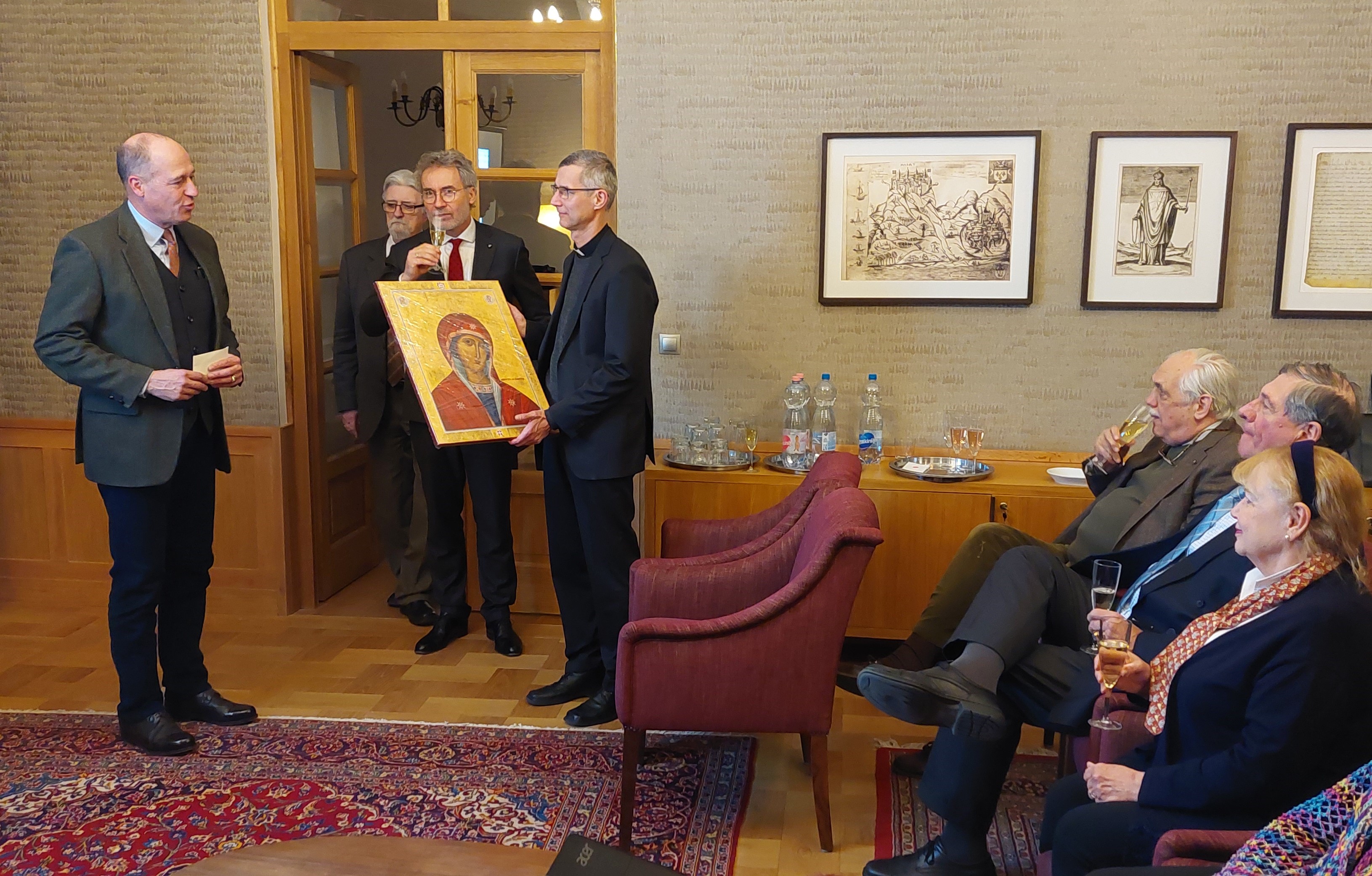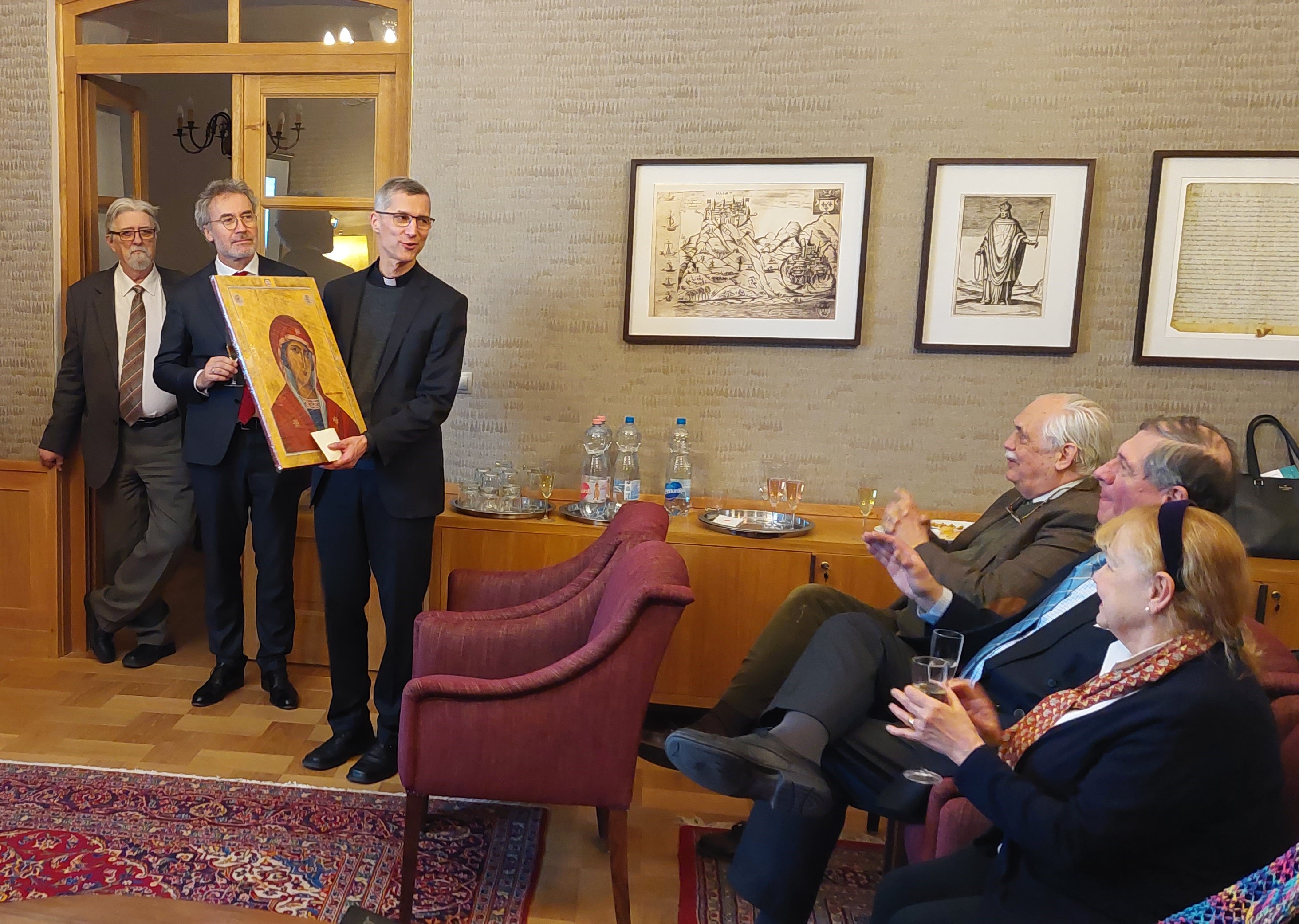 After Mass, we drank a toast in honour of our Chaplain Balázs Martos Ch.M., who has recently been appointed auxiliary Bishop. The Association presented Father Balázs with a copy of our new icon of Our Lady of Philermo, so that he can display it at his future workplace.